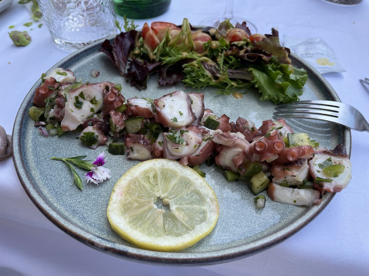 Great salmon tatar, the combination works very well and it's very refreshing on a hot day. The octopus however was okayish, as we had better during our trip. Good place close to the market a d fast service.